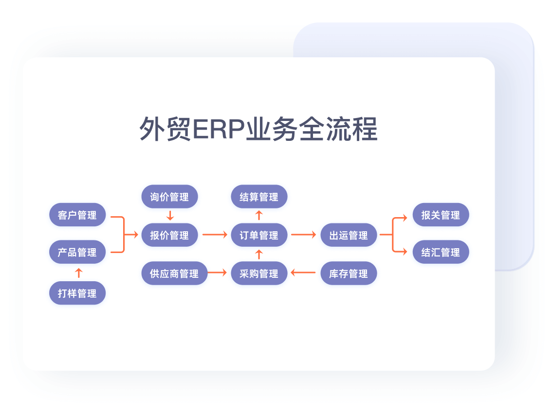 覆盖产品、报价、订单、采购、财务、出运、报关、结汇等外贸业务全流程