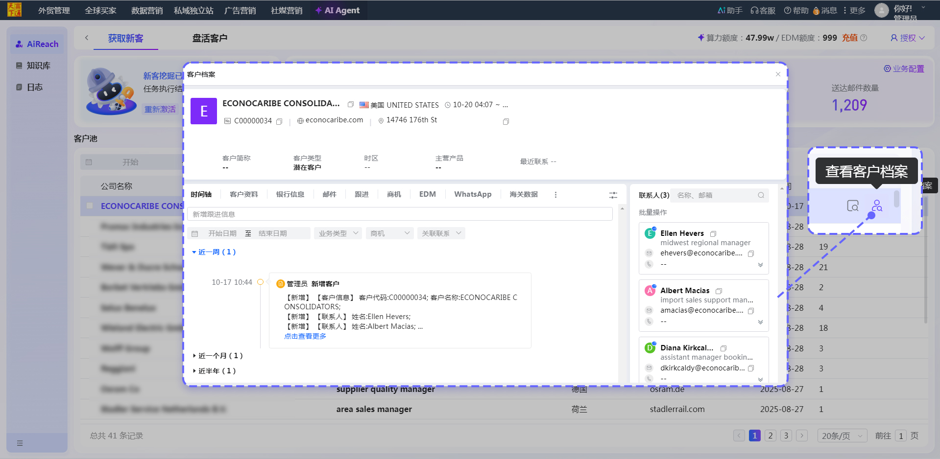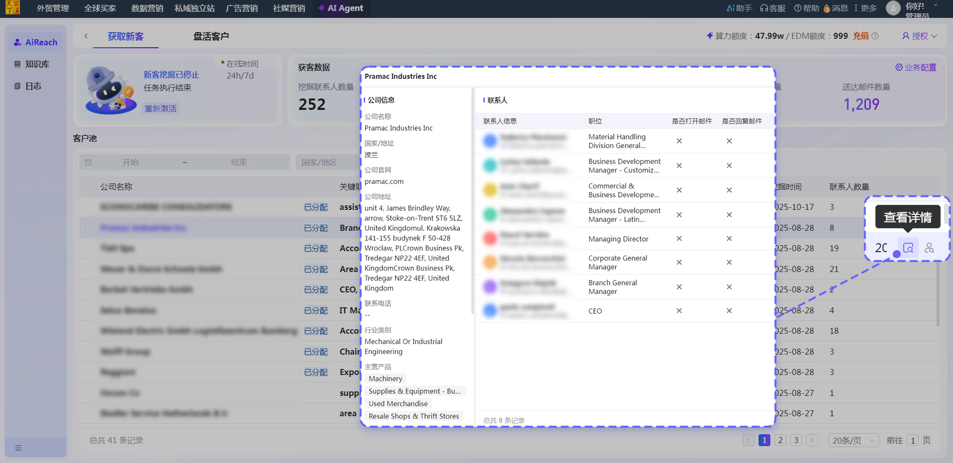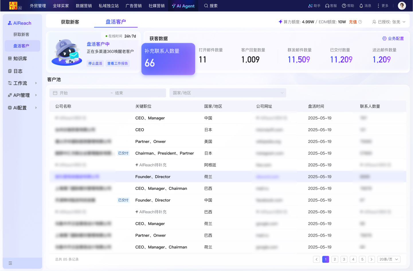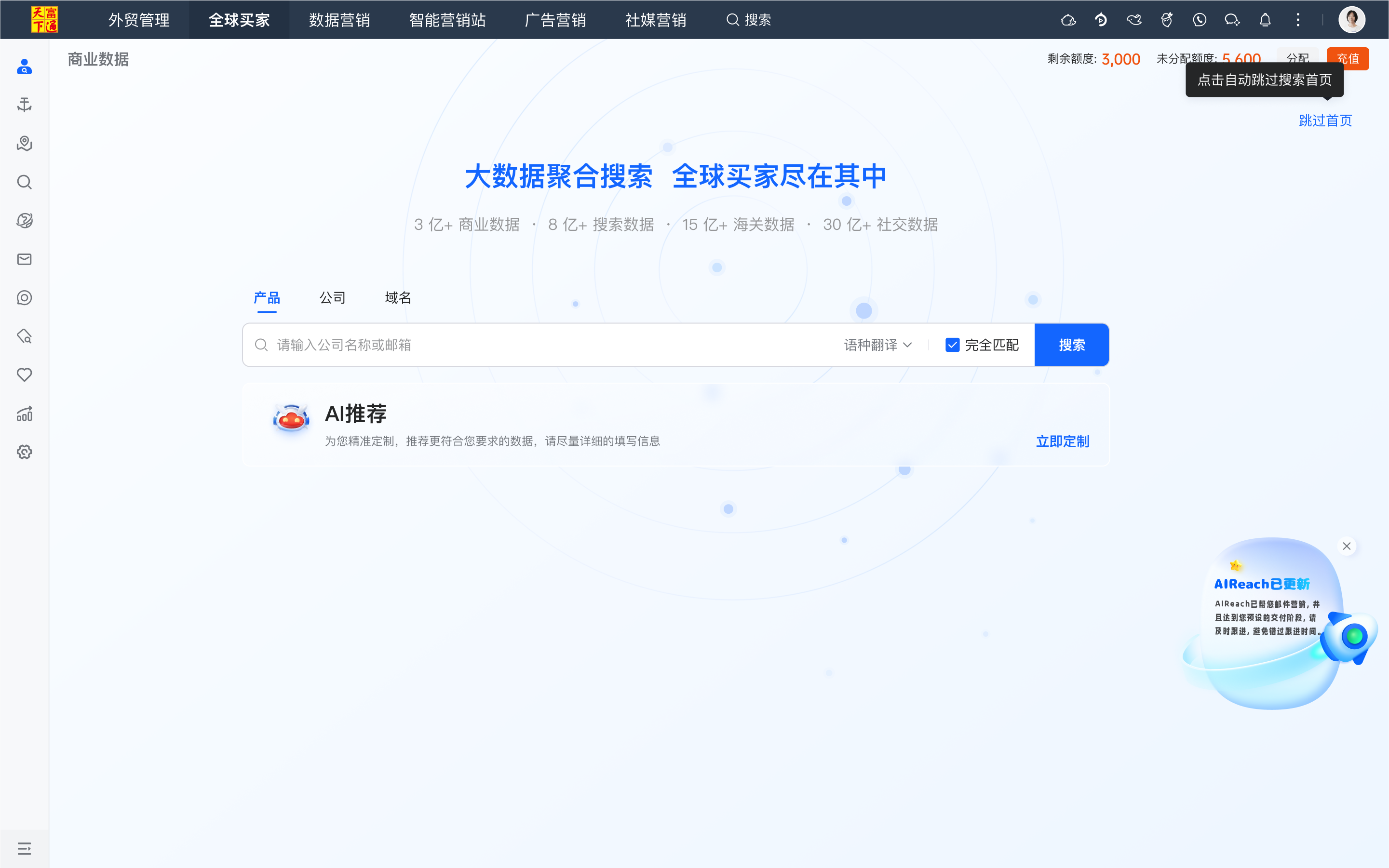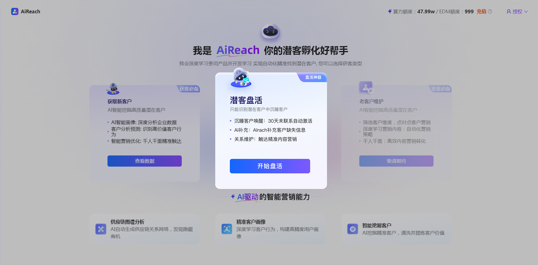 在此基础上,近期云平台对AiReach进行了全面优化升级,完成从“找客户”到“找对客户”、从“专注获新客”到“获客盘活两手抓”的转变。