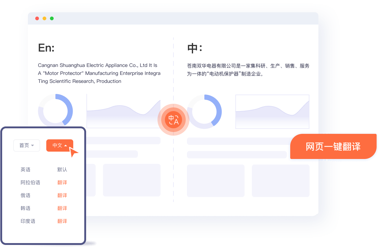 支持多语言建站,一个按钮实现整站翻译