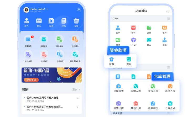 客户邮件、私域独立站询盘、订单跟进……所有功能模块都装进云平台手机APP,数据信息一目了然,手机端网页端自动同步,业务进展实时查看。