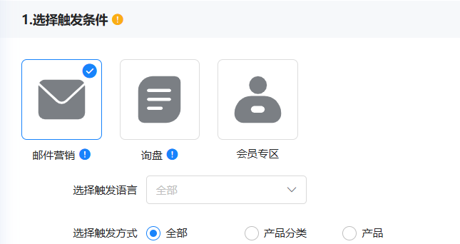 设置好后,客户通过EDM链接进入私域独立站时,客户发送包含关键词的询盘时,会员登录或新用户注册时,云平台会智能识别,精准发送契合的相关邮件。快速与客户建立联系,为您抢先一步抓住商机,提升客户转化与留存 。