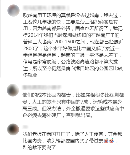 中国产业链齐全、工人素质高、基础设施完善,这是东南亚短期内难以替代的优势。