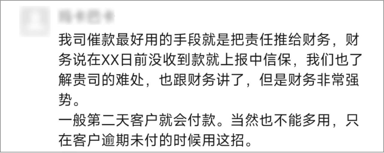 ● 案例4:买了中信保,对客户软硬兼施:“不付款就上报中信保,拉黑你,今后都不要想和中国供应商合作了”。