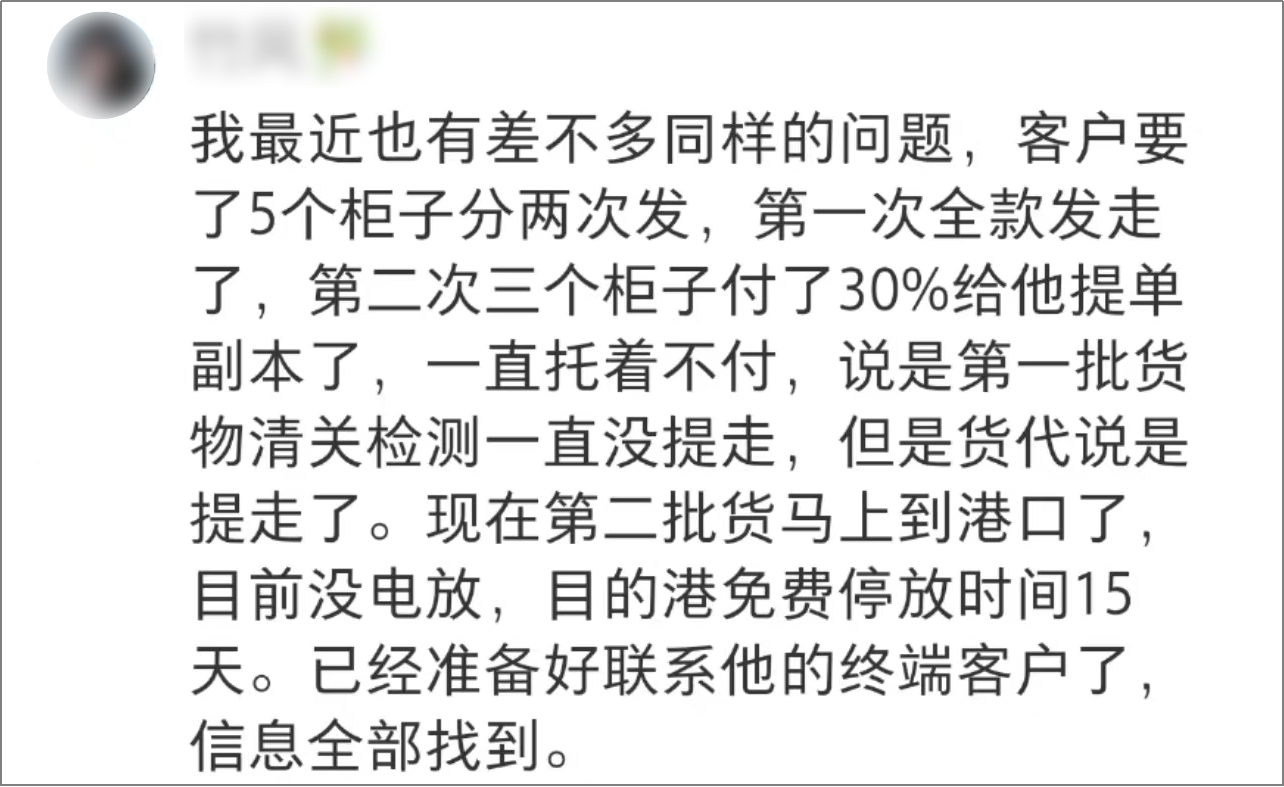 ● 案例2:货物未到港或未到客户手中的,抓住短暂黄金期,联系货代/船公司,要求未得到卖家确认前,绝对不能放货。除了催客户外,还可以尽快召回或者找下家出手: