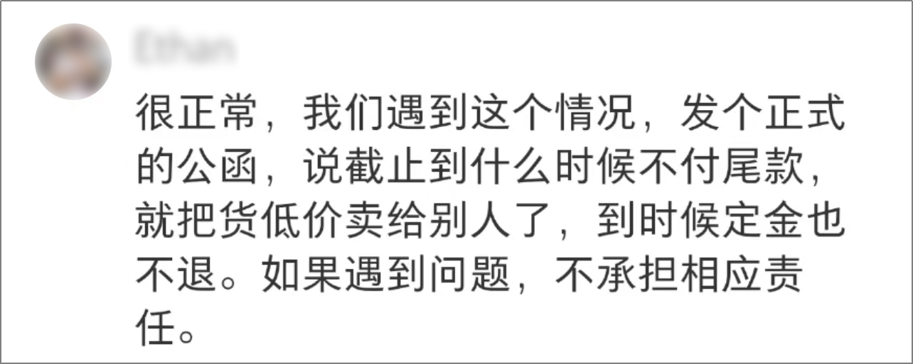 “我是货代,之前一个客户,做摩托车类目的。他的孟加拉老客户陆陆续续拖欠了两三百万尾款。那个老板几乎破产了,跑到孟加拉一直要钱才要到一百多万,最后赔了一百多万,等于这么多年这么些货都免费送了。”